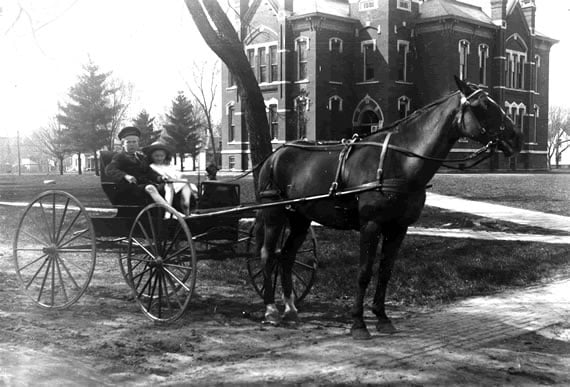 读者看到的第一个画面是一辆马车载着说话者,在第一行和第二行中,狄金森写道,“因为我不能为死亡停下——/他好心地为我停下了。”当说话者看向马车外面时,她通过描述她周围看到的东西来扩大画面。