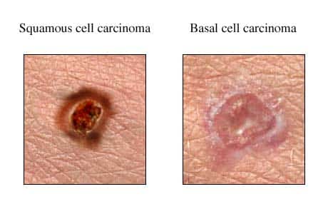皮肤癌有三种主要类型:基底细胞癌、鳞状细胞癌和恶性黑色素瘤。基底细胞癌通常作用于暴露在阳光下的皮肤部位。它通常表现为一个小凸起,表面光滑发亮。另一种类型的疤痕摸起来很硬。尽管这种特定类型的皮肤癌可能会直接扩散到癌区周围的组织,但它通常不会扩散到身体的其他部位。, 2 - 3页)。